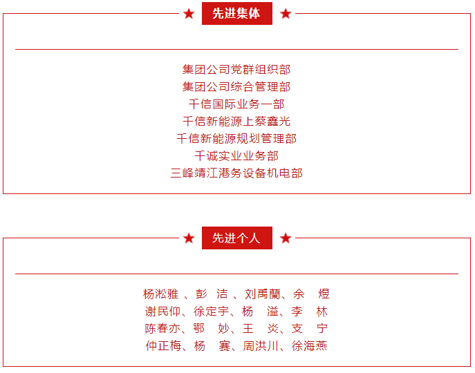 集团党委委员、监事会主席陈敬淑宣读了《中共重庆千信集团有限公司委员会重庆千信集团有限公司重庆千信集团有限公司工会委员会关于表彰2020-2021年度先进集体和先进个人的决定》,对2020-2021年度7个先进集团、16名先进生产(工作)者予以表彰。