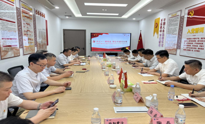 6月30日,千信国际党委与与富滇银行重庆分行党委开展了题为“庆七一·跟党走,银企共建促发展”党建联建活动。千信国际党委书记、执行董事、总经理彭念,党委副书记、纪委书记、工会主席方骏,财务总监王振宇,相关职能部门负责人、各党支部书记及支部委员,富滇银行重庆分行党委书记、行长张忠林,党委委员、副行长陈洪波、陈岑及相关职能部门负责人、党支部书记、职工代表参加活动。