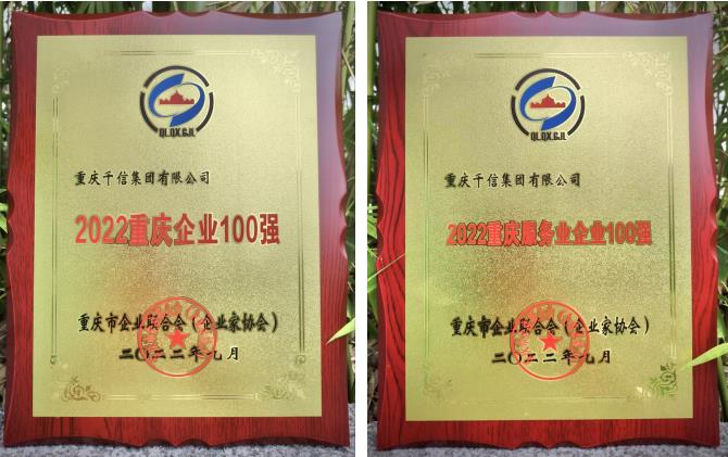 9月26日,由重庆市经济和信息化委员会指导、重庆市企业联合会(企业家协会)主办的“2021年度重庆市优秀企业家表彰会暨2022重庆百强企业发布会”举办。千信集团连续5年跻身重庆企业100强、重庆服务业企业100强,分别位列最新榜单第15位和第9位。