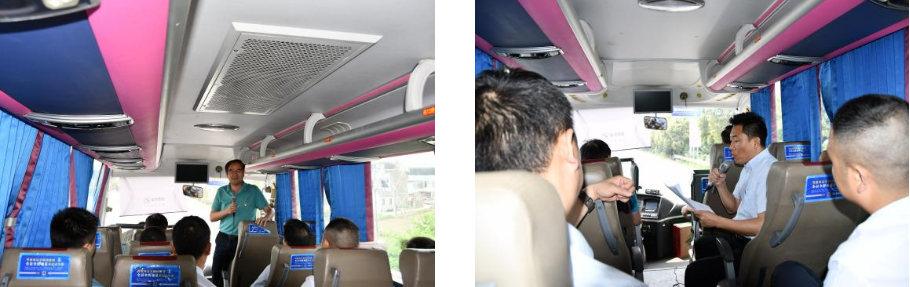 支部在乘车前往过程中开设“随车讲堂”,党支部书记覃孝见为党员们讲授了《扎实开展主题教育,实干笃行推动高质量发展》专题党课,支部委员们带领党员、入党积极分子和团员青年集中学习了习近平总书记近期重要讲话精神,支部党员刘春艳和入党积极分子代表侯正彬同志交流了近期学习心得体会。