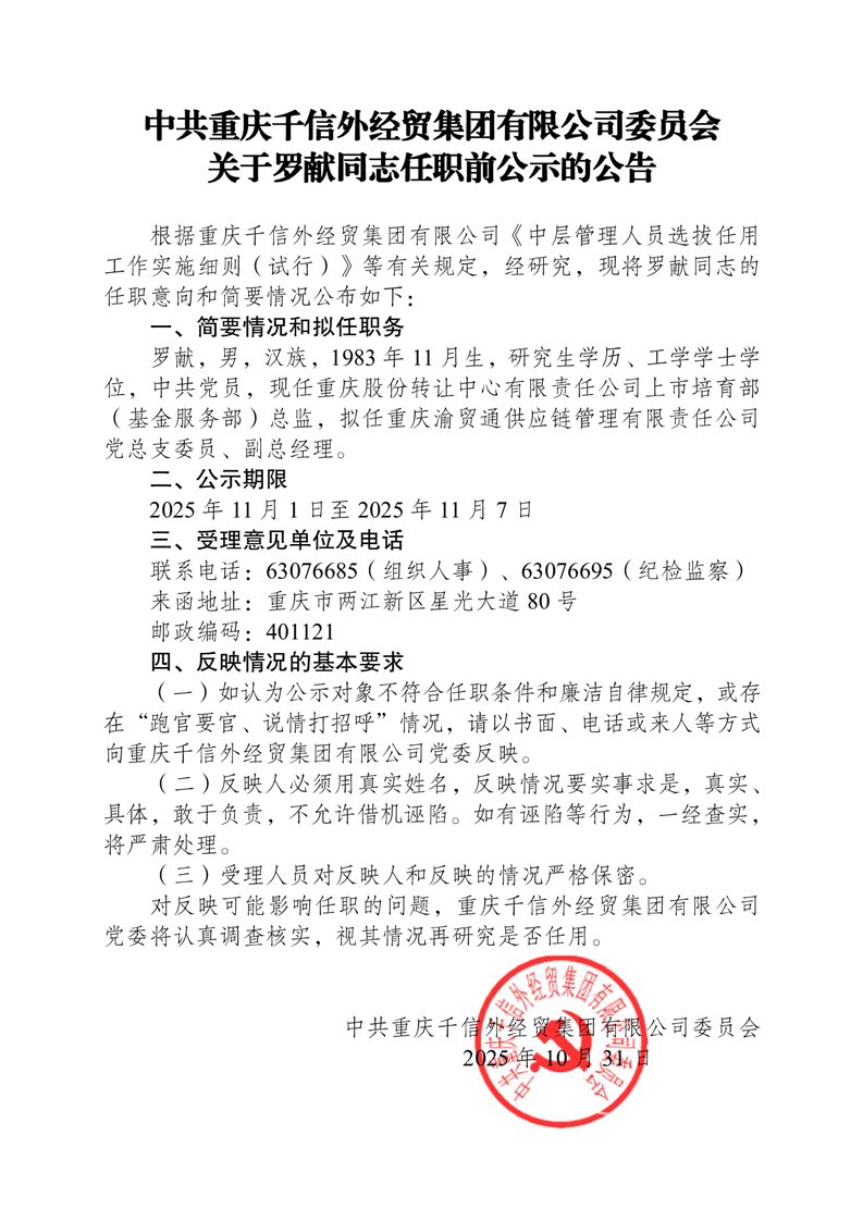 关于罗献同志任职前公示的公告