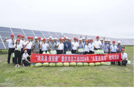 7月31日,重庆市总工会党组成员、副主席申雄带队,重庆市金融财贸轻纺工会副主席魏杨,重庆市交通建设工会调研员杨柯等一行来到赤峰金色能源有限公司,开展了“防暑保安康”清凉慰问活动。