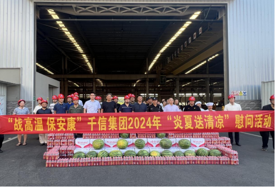 为切实做好防暑降温工作,确保高温天气下的生产安全,近日,千信集团党委委员、常务副总经理陈宏,副总经理刘宇红,以及工会主席张约翰、经济运行部部长何勇等一行来到位于长寿的千信智造园区,开展了“战高温保安康”千信集团2024年“炎夏送清凉”慰问活动。