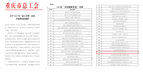 近日,在重庆市总工会2024年“渝工关爱”活动评选中,千信集团职工食堂凭借出色的硬件设施、严谨的厨房管理、优质的食材供应,荣获“百优职工健康食堂”称号。