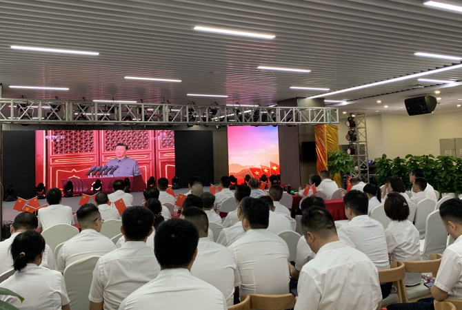 千信集团全体领导班子成员以及集团本部、千信国际贸易党员干部职工在新办公楼多功能厅集中观看了庆祝中国共产党成立100周年大会直播,聆听习近平总书记的重要讲话。